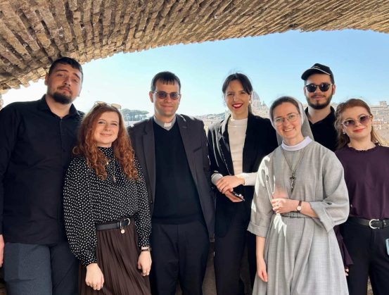 Na zdjęciu ks. dr hab. Jan Dohnalik, prof. ucz. ze studentami WPK UKSW podczas wyjazdu naukowego do Rzymu w 2025 roku.